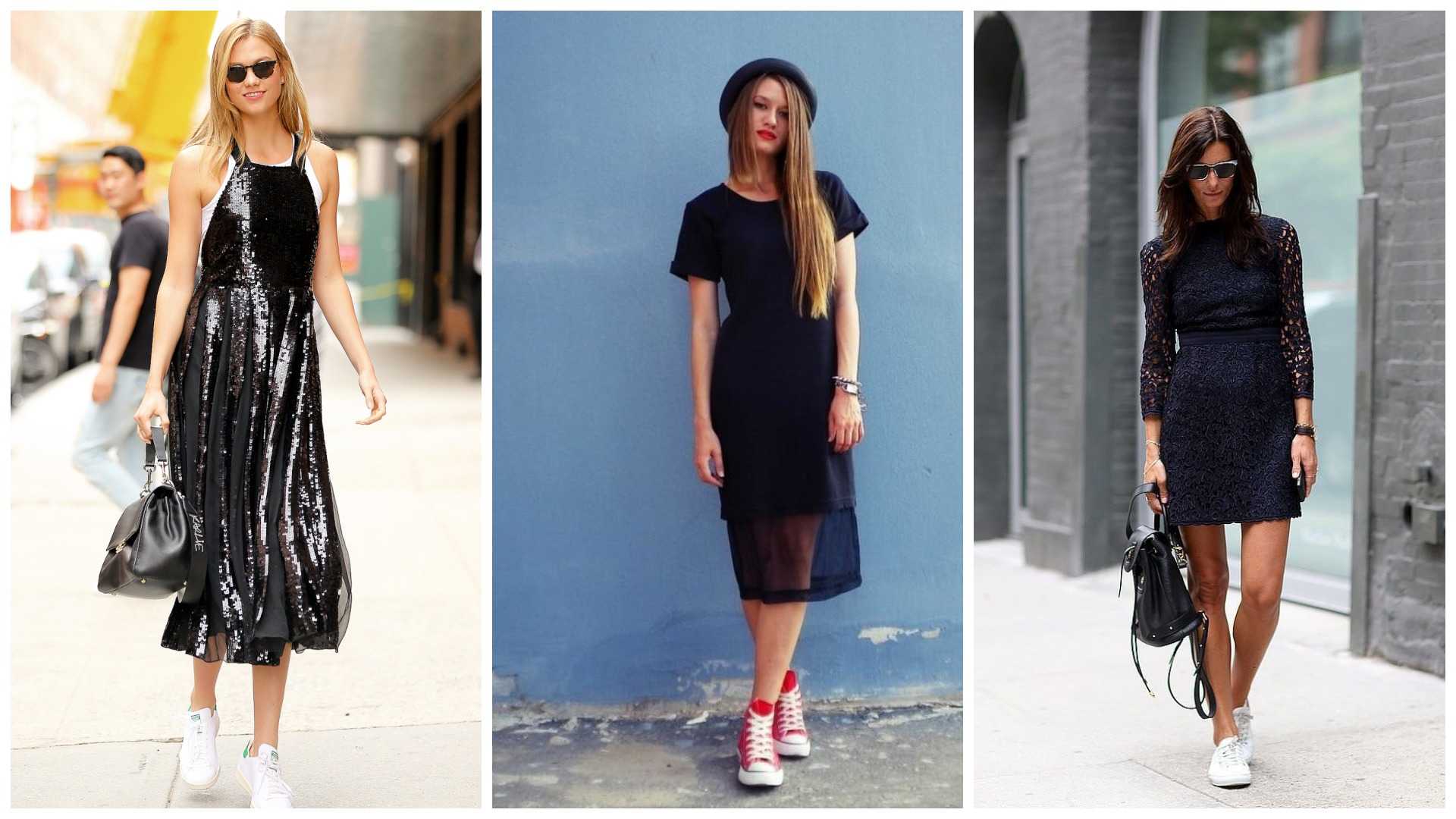 Избежать ошибок несложно, если подходить к составлению «лука» грамотно. Несмотря на необычность комбинации, платье и кроссовки могут быть объединены. Следуя советам стилистов, легко подобрать оптимальные модели, необходимые детали. В таком образе удобно прогуляться с друзьями, посетить кафе. Экстравагантно выглядит девушка, надевшая с кроссовками вечернее платье черного цвета. А если позволяет политики компании, то можно прийти в спортивной обуви даже в офис.
