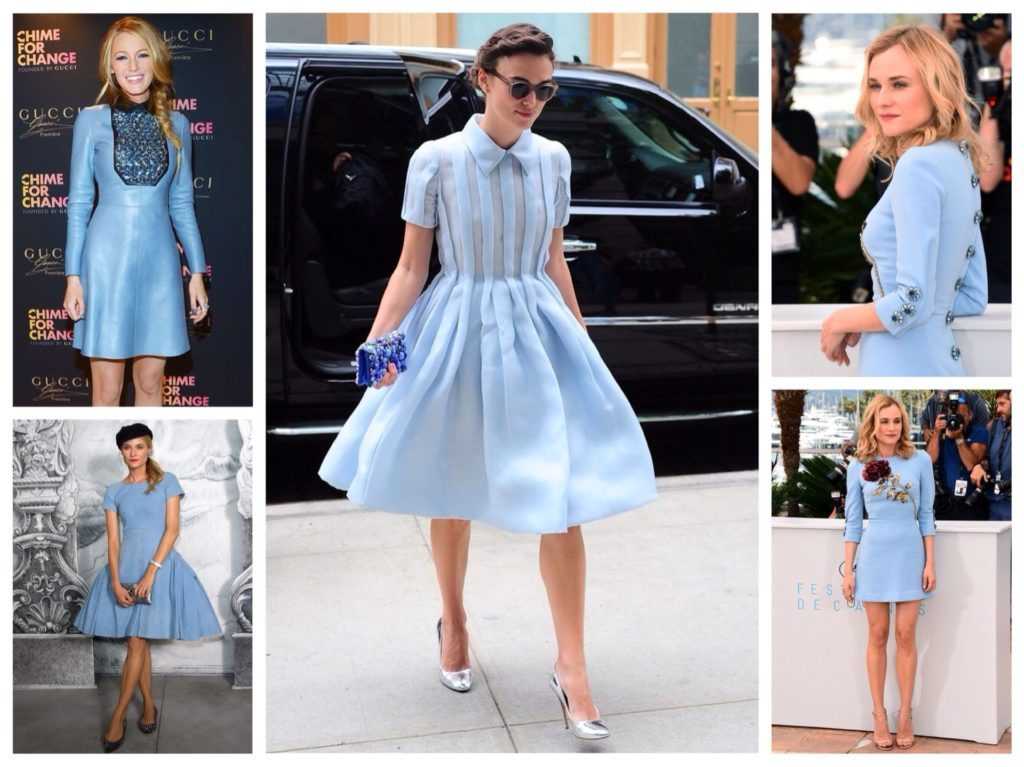 Непростым будет решение вопроса о том, как подобрать туфли к платью по цвету, если оно – голубого оттенка. Самыми выигрышными будут романтичные дуэты с белой и серебристой обувью. Допустимы сочетания таких нарядов с черными, бежевыми и в цвет с туалетами парами.