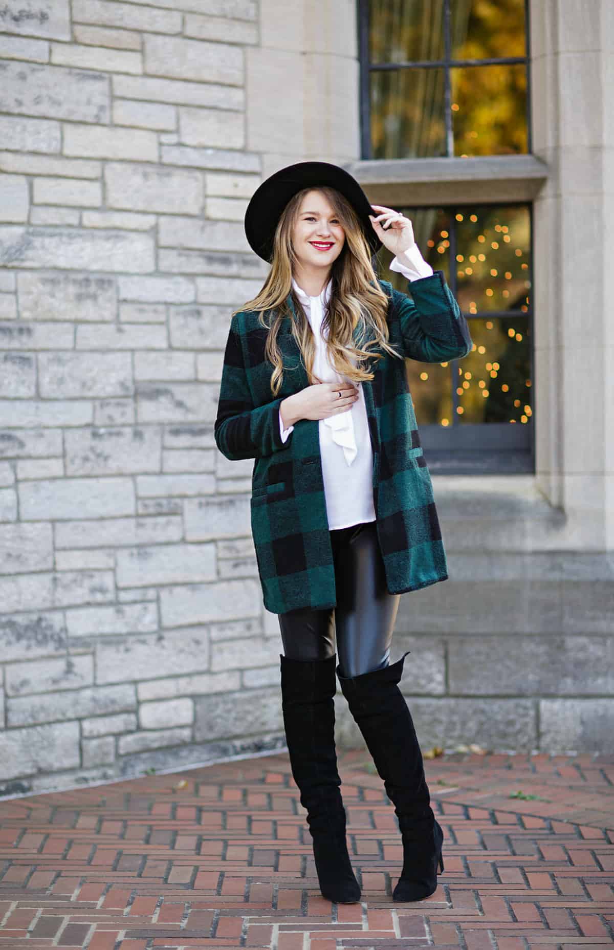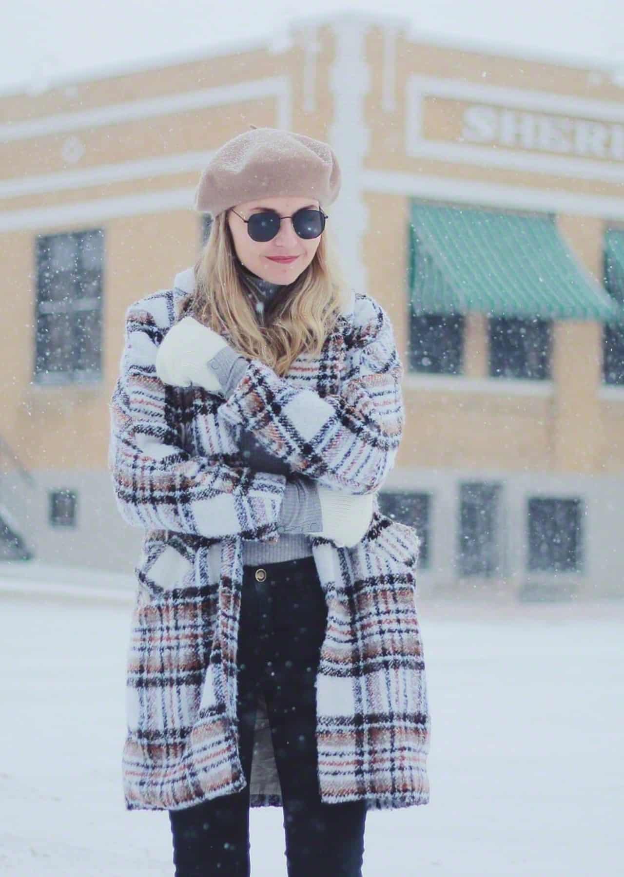 Органичные луки с клетчатым пальто получатся, если правильно выбрать шапку: