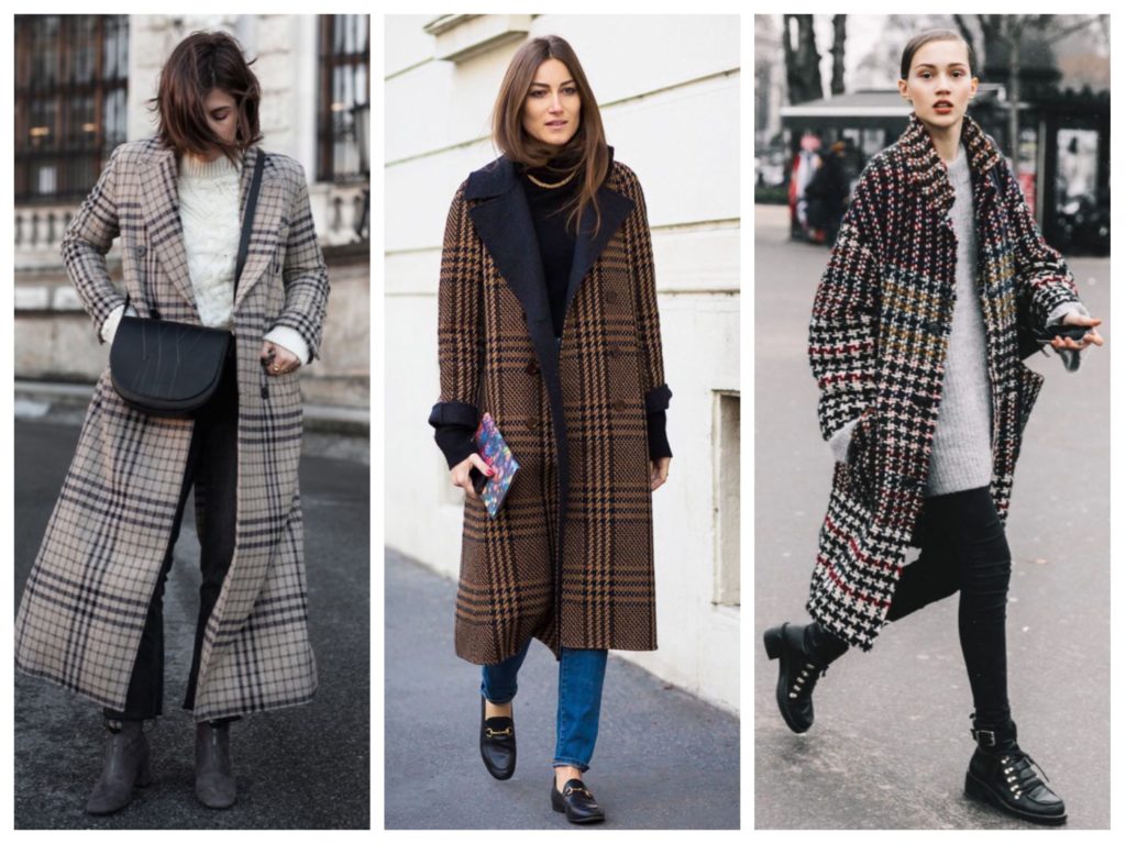 Варианты длинного клетчатого пальто
