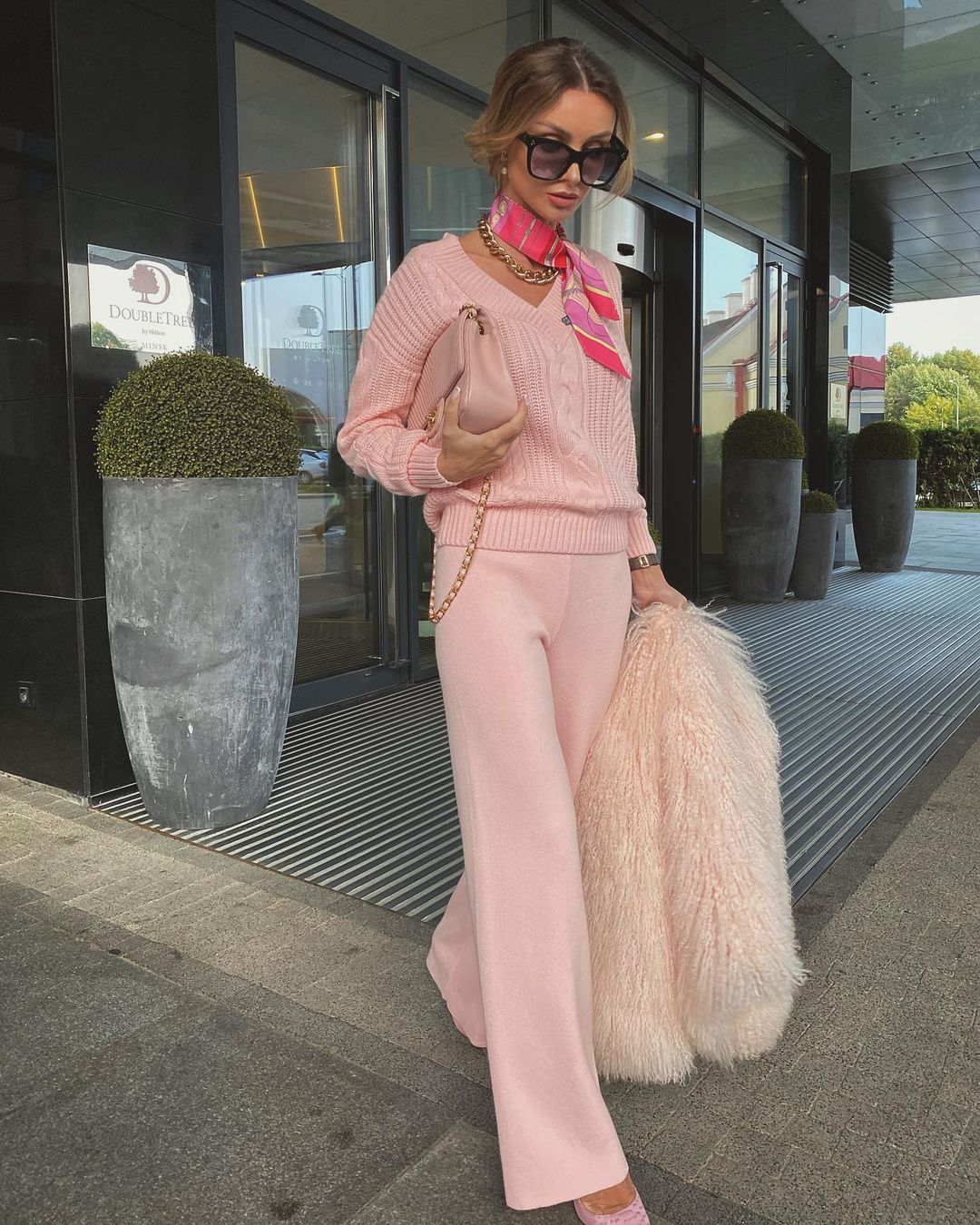 15 изящных примеров с чем носить розовый свитер и джемпер