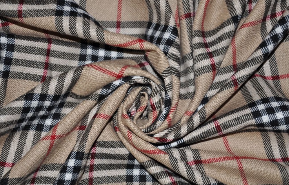 - Берберри – клетка, разработанная британским брендом одежды Burberry. Для этого рисунка используются только четыре цвета: бежевый – основной, а также черный, красный и белый.