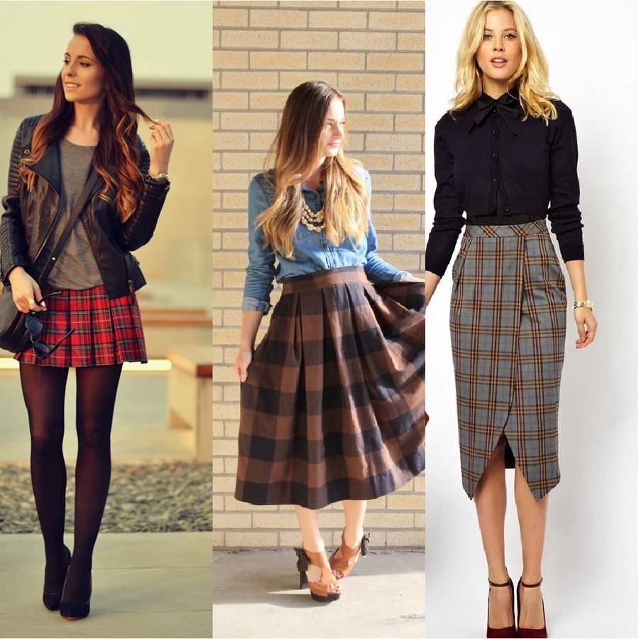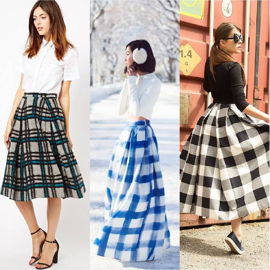 Фасоны юбок в крупную и мелкую клетку