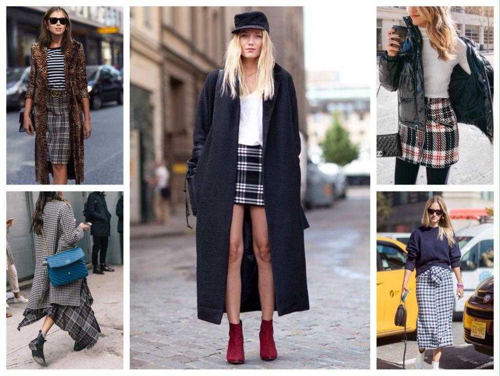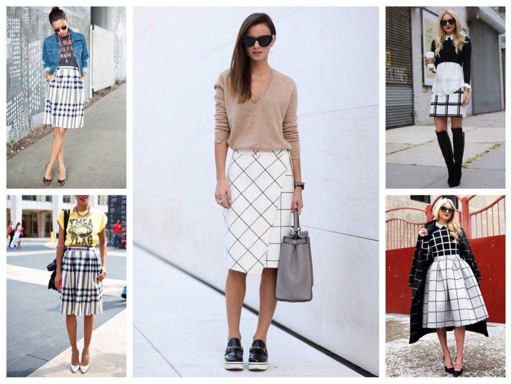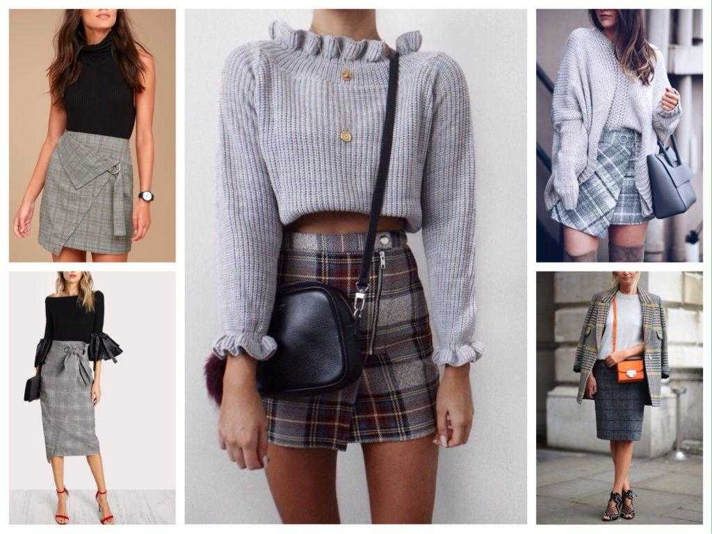 Сочетания серой юбки в клетку для модных образов