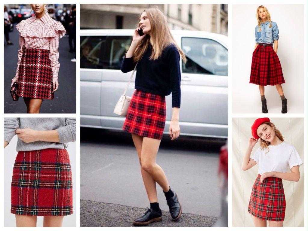 Клетчатую юбку-мини любят носить юные девушки или даже школьницы. Особенно популярны различные модели юбок в складку. Такая одежда дарит просто огромную свободу при выборе своего уникального образа. Например, красная юбка в сочетании с блузкой черно-белого цвета и строгой жилеткой придают общему стилю нотку классической утонченности, а кожаная крупная куртка или жакет подчеркивают новаторство.