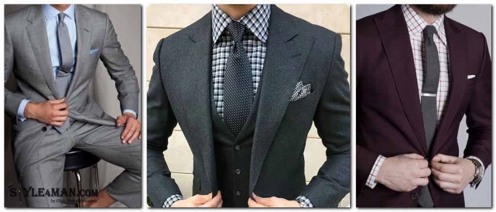 ВАЖНО! К однотонным комплектам можно надевать как принтовые, так и обычные рубашки. Если же сам костюм имеет орнамент (тонкая клетка, полоска), то его лучше сочетать с рубашкой без какого-нибудь рисунка