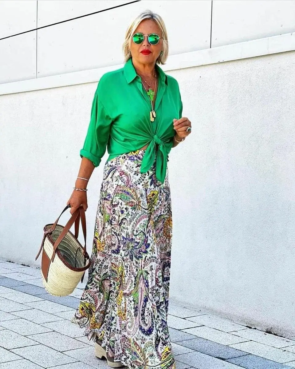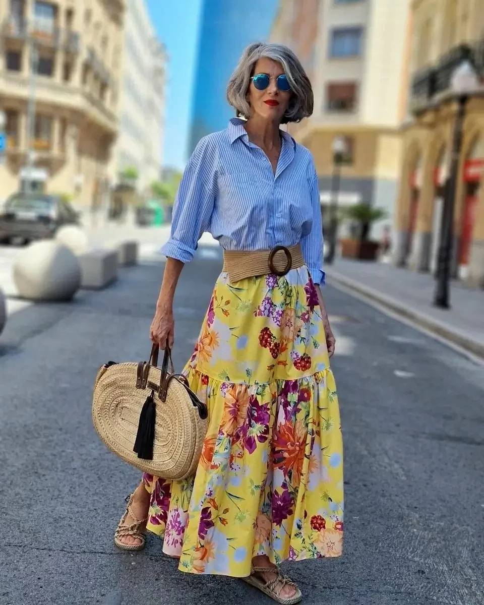 Если же вы предпочитаете более повседневный стиль, можно сочетать юбку с цветочным принтом с графической футболкой или простой топом. Комплект можно дополнить джинсовой курткой или кардиганом, а на ноги надеть комфортные кеды или балетки. Для завершения образа можно добавить аксессуары, например, солнечные очки или шляпу в стиле casual.