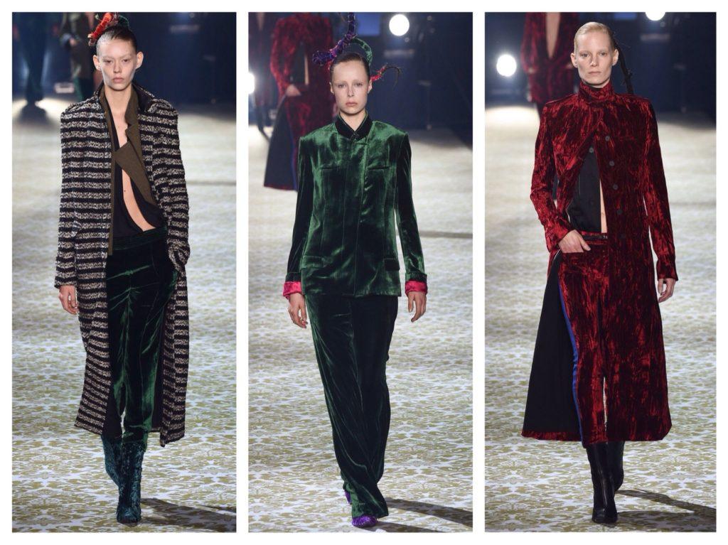 Коллекции Haider Ackermann и Antonio Berardi выделились оригинальными бархатными костюмами.
