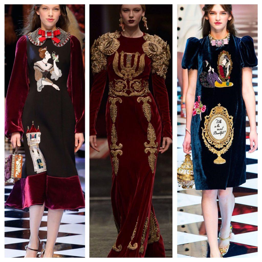 В новом сезоне многие модные дома, среди которых Dolce Gabbana, Monse, Fendi и многие другие, презентовали в своих коллекциях платья из бархата различных моделей и оттенков. Antonio Berardi дополнили их легким кружевом, в результате чего бархатное платье стало еще более элегантным и гармоничным.