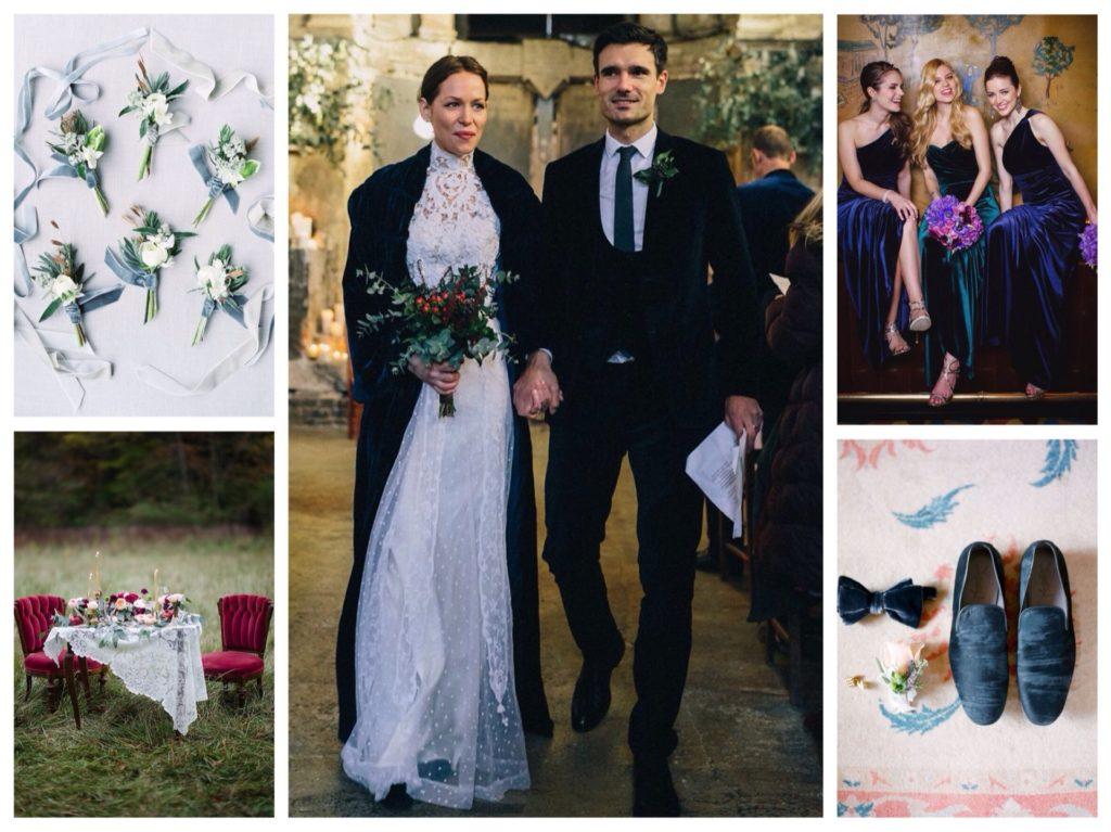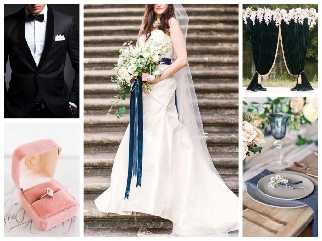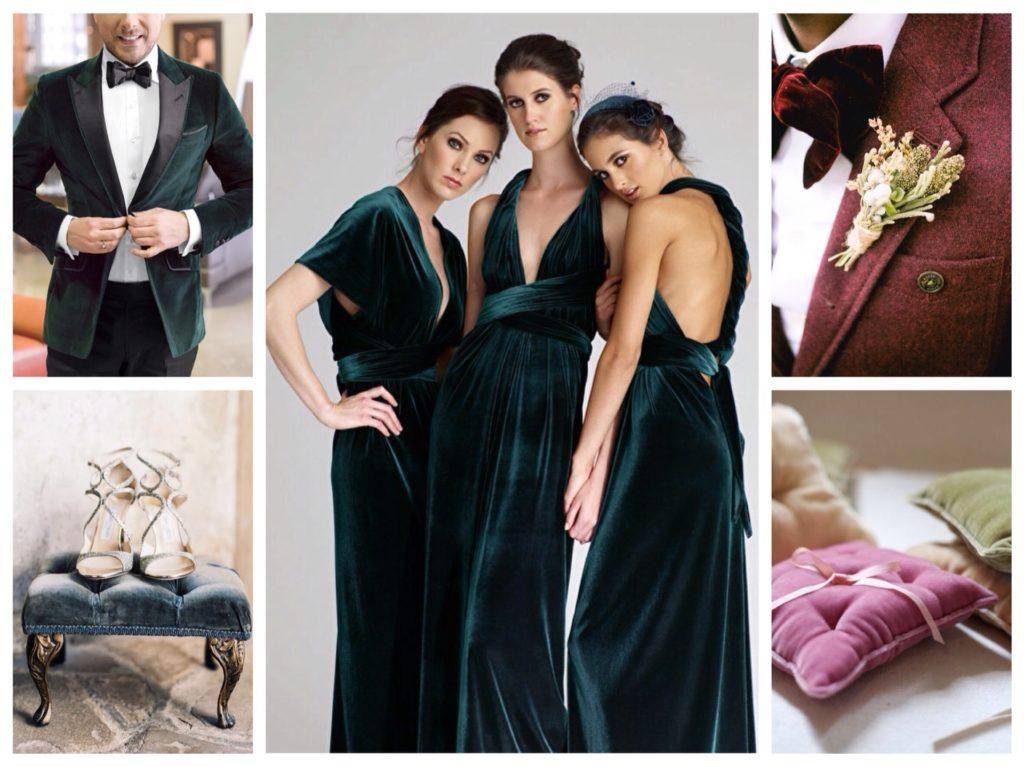 Можно использовать бархат в тематике свадьбы. Торжество допускает бархатный пиджак, либо бабочку, платья для подружек, элементы наряда невесты. Роскошными акцентами его можно использовать в декоре и сервировке.