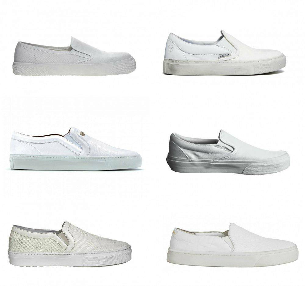 Придумать, с чем носить актуальные белые слипоны, подчеркивающие грациозные женские ножки, можно, посмотрев на фото разнообразных моделей этой обуви — сочетать их следует с яркими и броскими вещами: