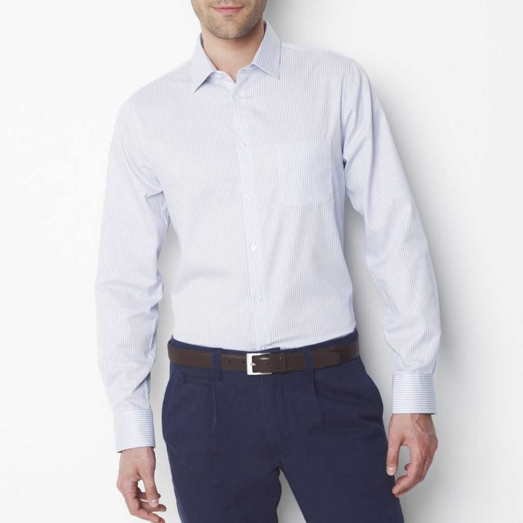 Рассмотрим самые положительные стороны мужских рубашек в полоску. Вертикальная полоска стройнит фигуру, поэтому подойдет для мужчин с животиком и лишним весом, являясь замечательным способом скрыть изъяны телосложения. Полоска на рубашке отлично сочетается практически со всеми узорами на галстуке. Вам не придется мучительно раздумывать — какой галстук выбрать, прикладывая к рубашке то один экземпляр, то другой — классическая полоска в этом случае универсальна. Чего не скажешь, к примеру о рубашках в клетку или с какими-либо узорами и принтами.