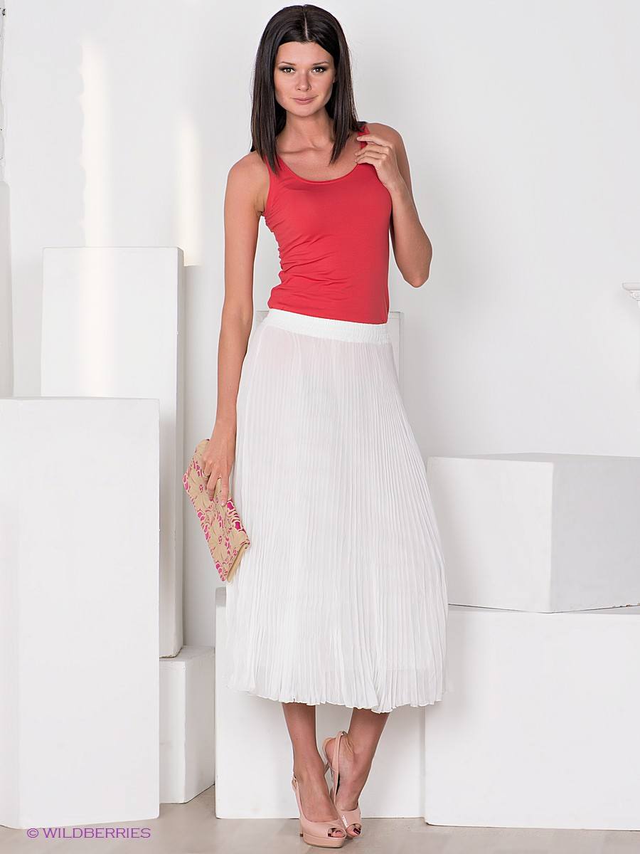 - белый цвет плиссе подчеркнет легкость и игривость абсолютно любой девушки. Особенно хорошо она смотрится с рубашками и сандалиями.