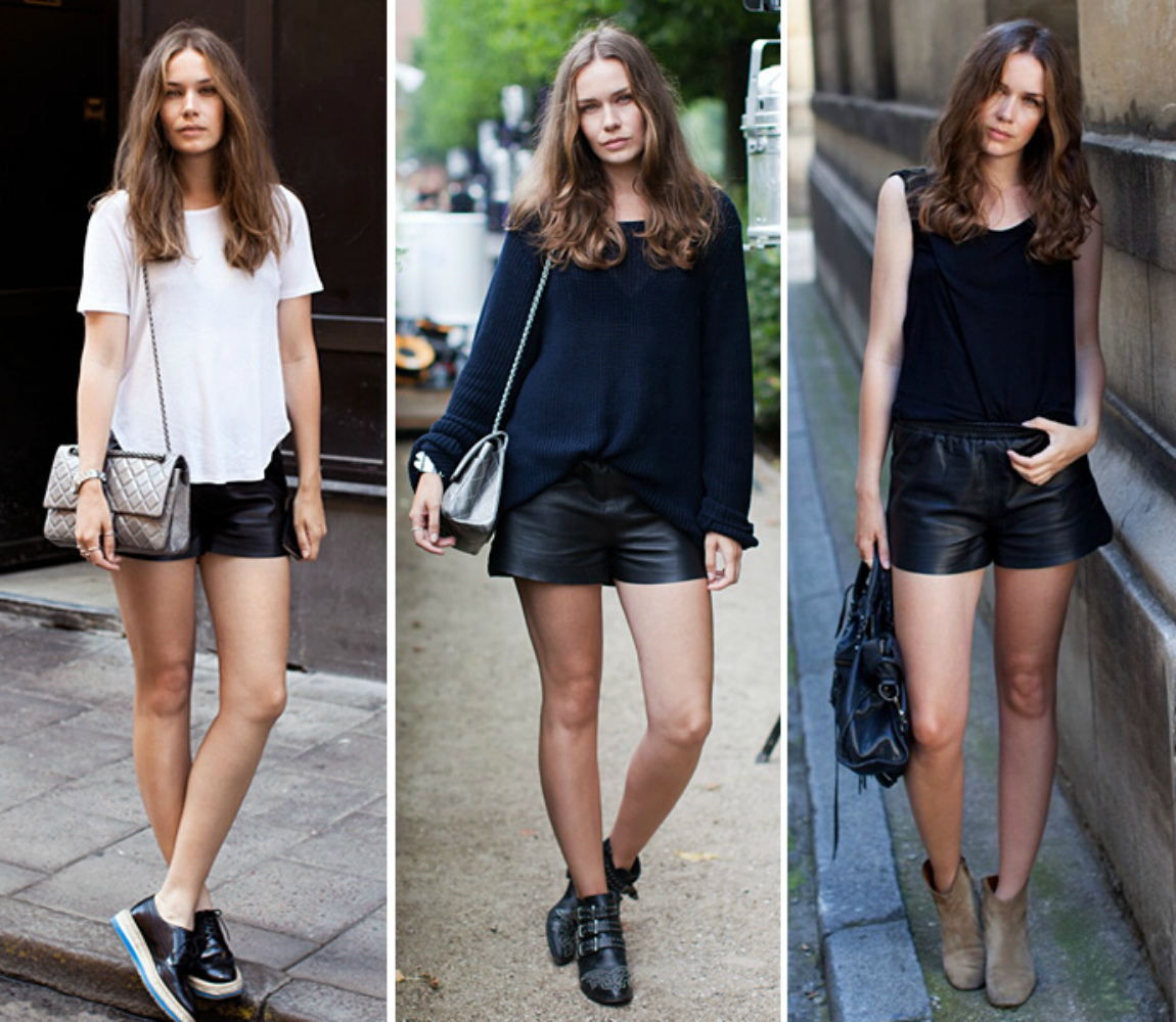 Осенью и весной наиболее актуальными являются всё же тёплые вещи, поэтому идеальным вариантом в этом случае являются кожаные шорты. Если кожа имеет тонкую вычинку, то использовать вещь можно и летом.