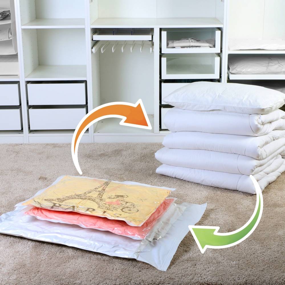Вакуумные пакеты позволяют существенно сократить объем хранимых вещей.