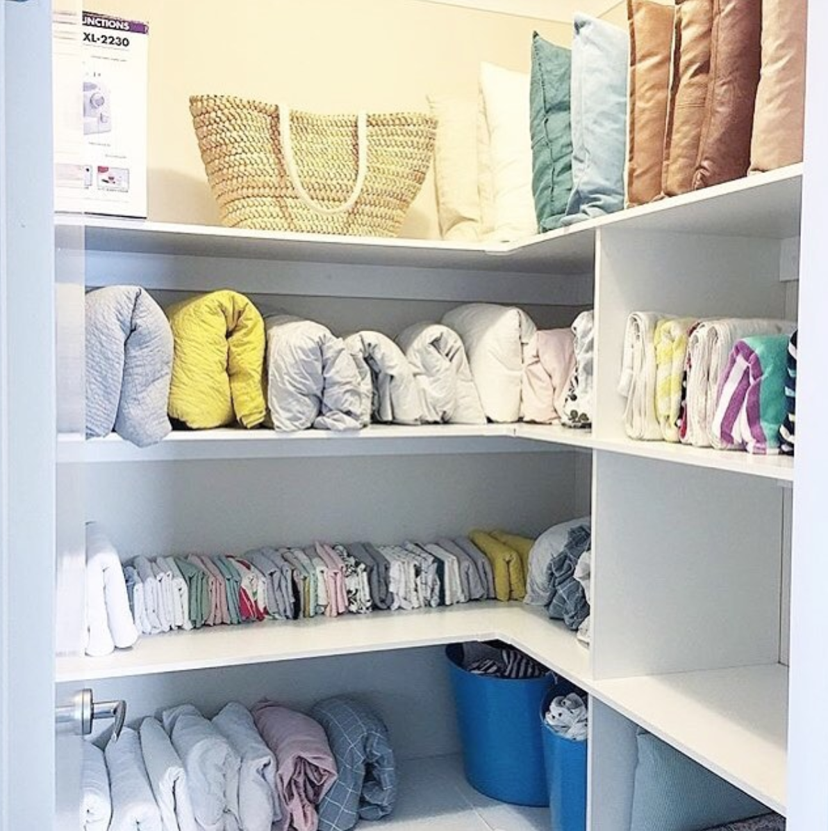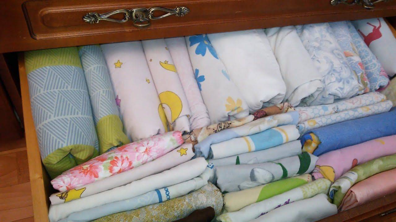 Вы, возможно, помните аккуратные стопочки постельного на полке, уложенные в хаотичном порядке, как делали наши мамы и бабушки. Безусловно, этот способ очень удобный. Всё, что нужно — это выгладить принадлежности, сложить их ровным прямоугольником, выровнять и отправить на полку в таком же аккуратном порядке.