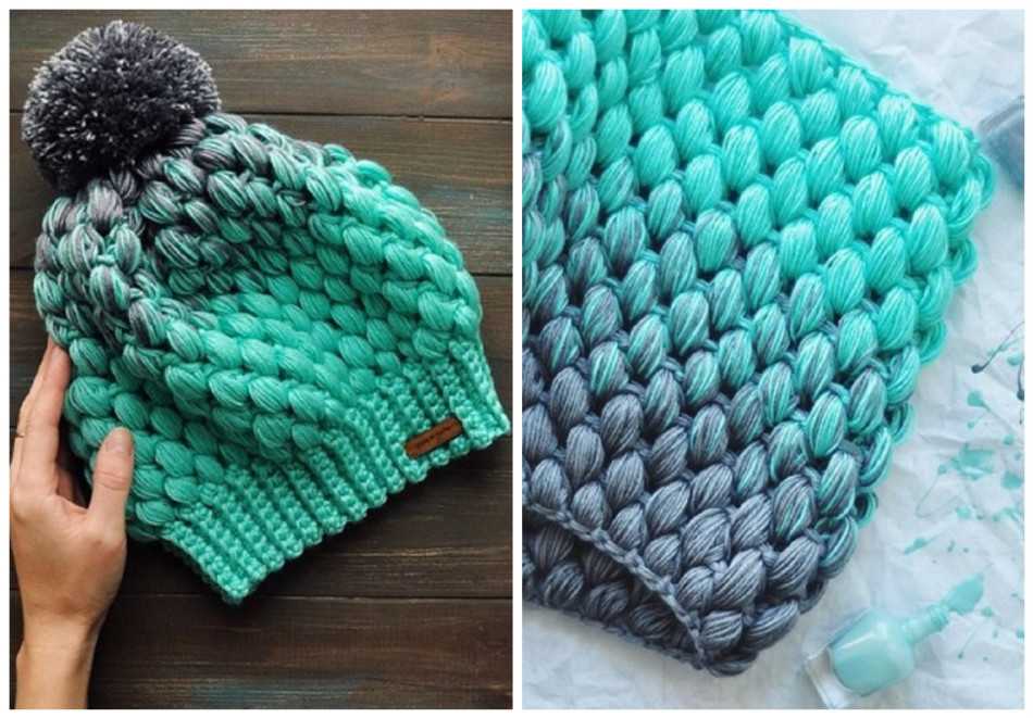- Следующие ряды вяжутся пышными столбиками с добавлением в каждом сегменте пышных столбиков.