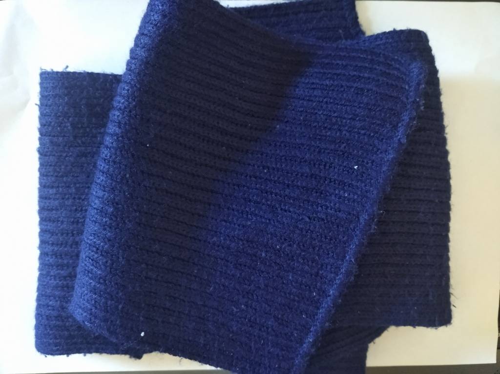 - Чтобы правильно собрать готовый шарф капюшон, его складывают пополам лицевой стороной внутрь. Схема выкройки в месте сгиба имеет штриховую линию.