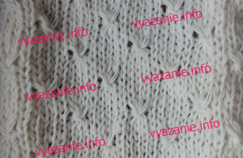 Крупный узор будем вязать 3 из 3 через 5 петель и 3 ряда как смотрят петли.