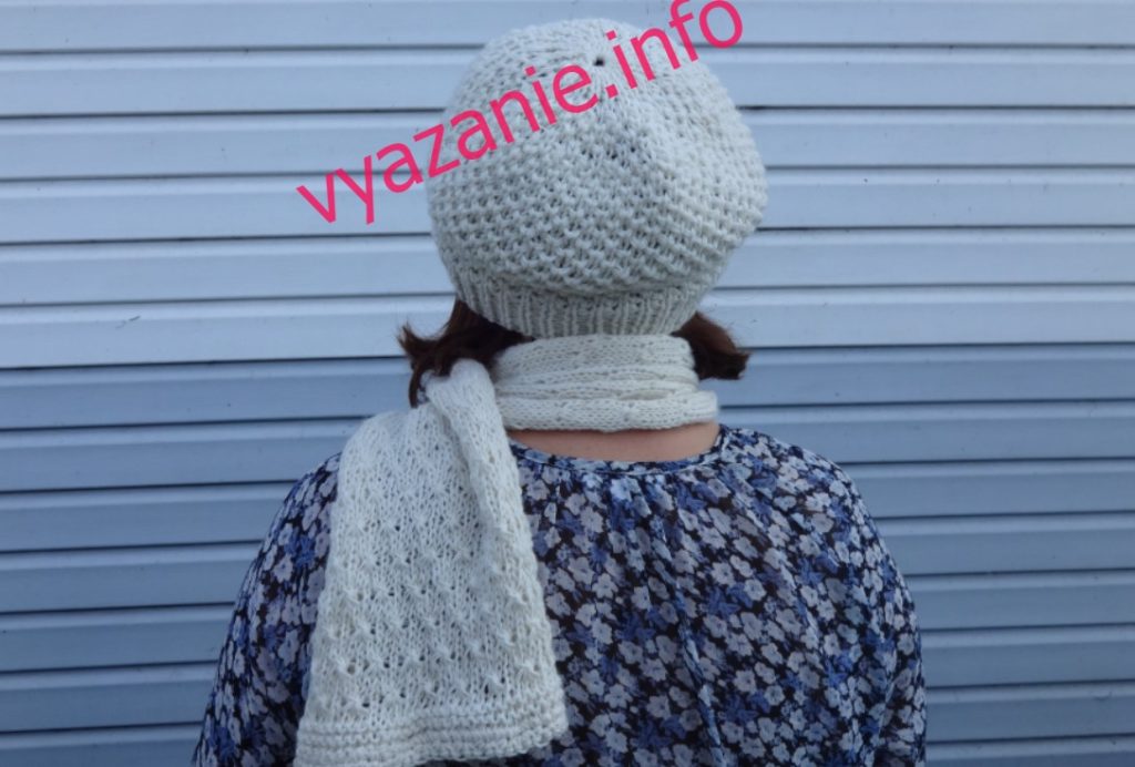 Ширина готового шарфа до ВТО 26 см, длина 110 см. После ВТО сфотографировать не удалось. Шарф вместе с беретом срочно уехал.