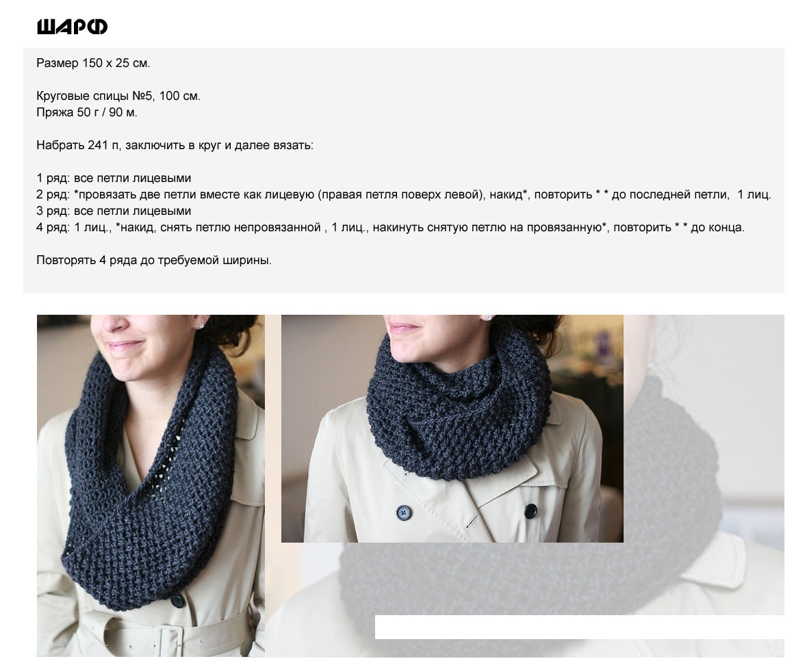 Шарф снуд спицами: схемы и инструкция для начинающих