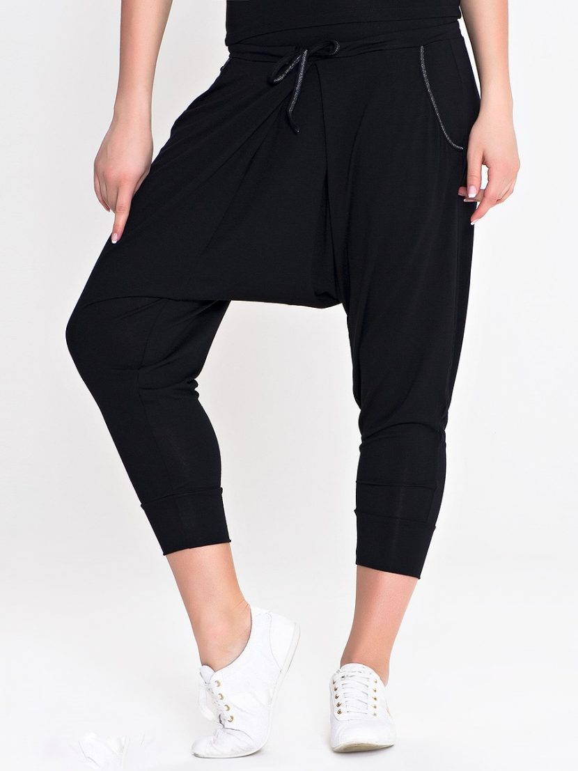 Пошить такие стильные брюки своими руками проще простого. Выбирая ткани, в качестве основы можно отдать предпочтение натуральному хлопку, льну и даже джинсовой ткани. Традиционно такие штаны шьются из светлых тканей. Трикотажные штаны в восточном стиле с низкой мотней идеально подойдут для занятий спортом или танцами.