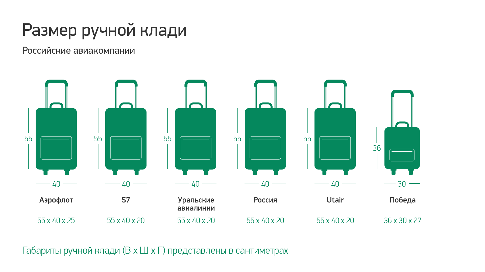 P.S. Еще раз напомним, что размер ручной клади у «Аэрофлота» не должен превышать 55х40х25 см по сумме трех измерений.