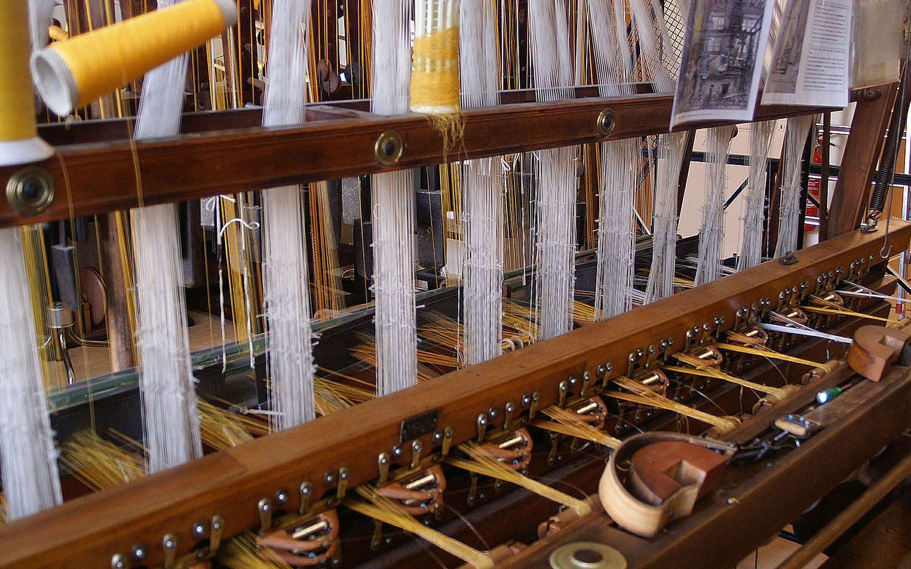Готовые мотки нитей, которые называются шелк-сырец, поступают в мастерские для окрашивания, затем на ткацкие станки.