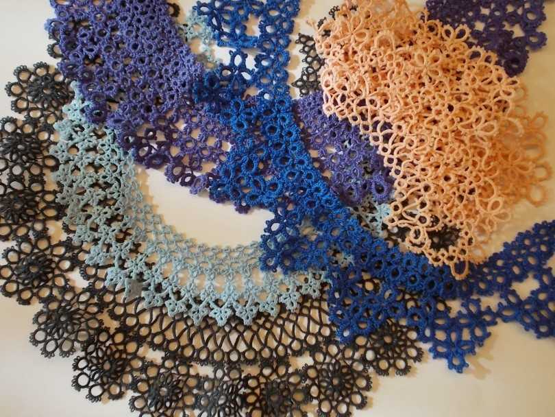 Летнюю тематику продолжит колье из кружева в технике «Оглала». Она проста, требует небольших навыков и не затратна.