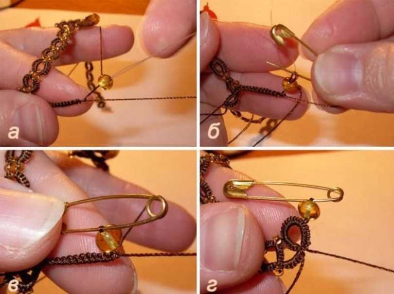 - В месте соединения кончиков шнурка пришить бисеринку, а сами кончики соединить несколькими стежками.