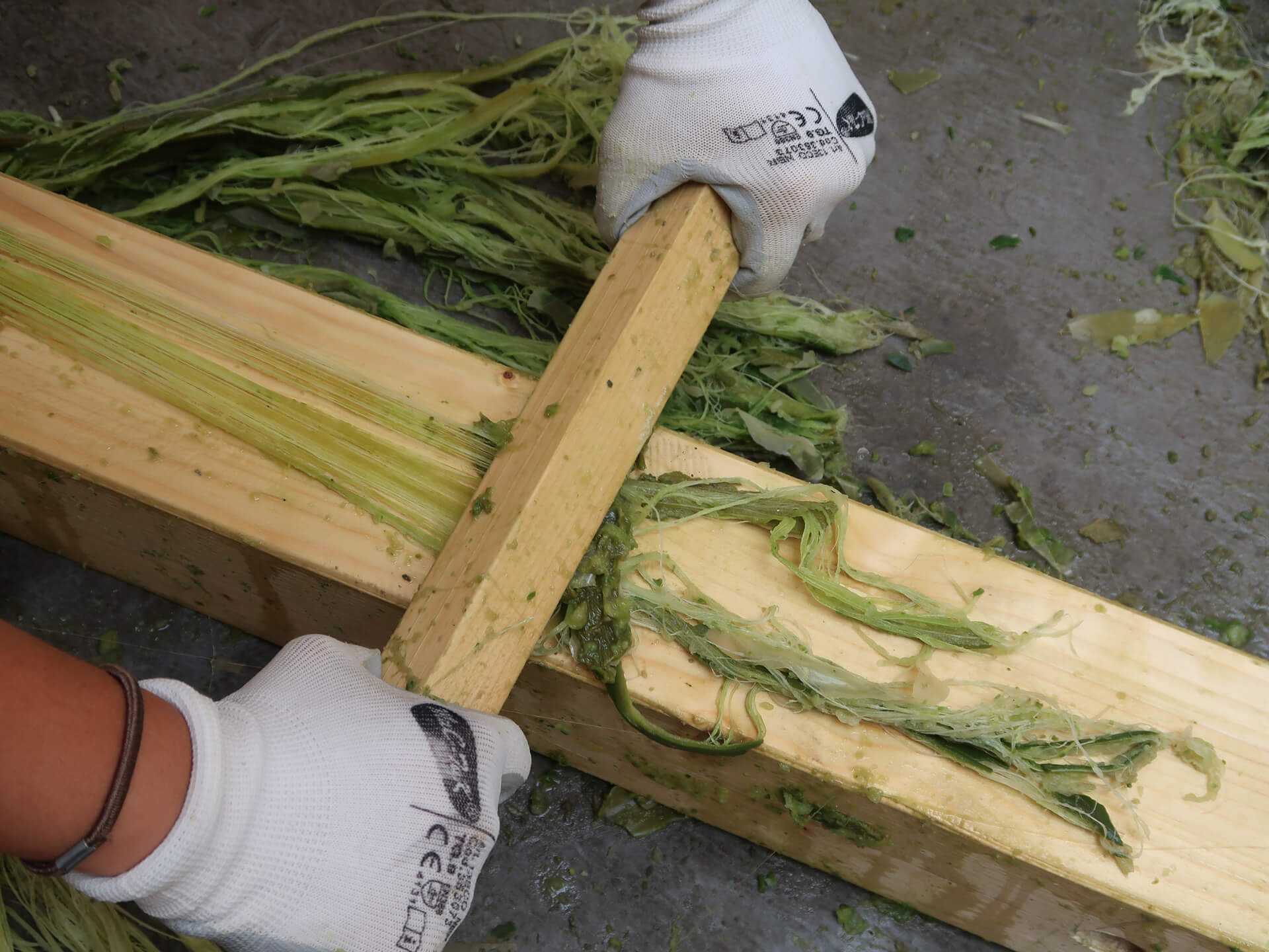 Есть регионы, например, некоторые плантации Танзании, где до сих пор все манипуляции производятся вручную. В более продвинутых странах пользуются в этих целях декортикационными машинами, которые разбивают и раздавливают листья. Однако вытаскиваются длинные волокна руками рабочих.