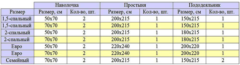 Как рассчитывают ткань на постельное бельё по стандартной таблице размеров
