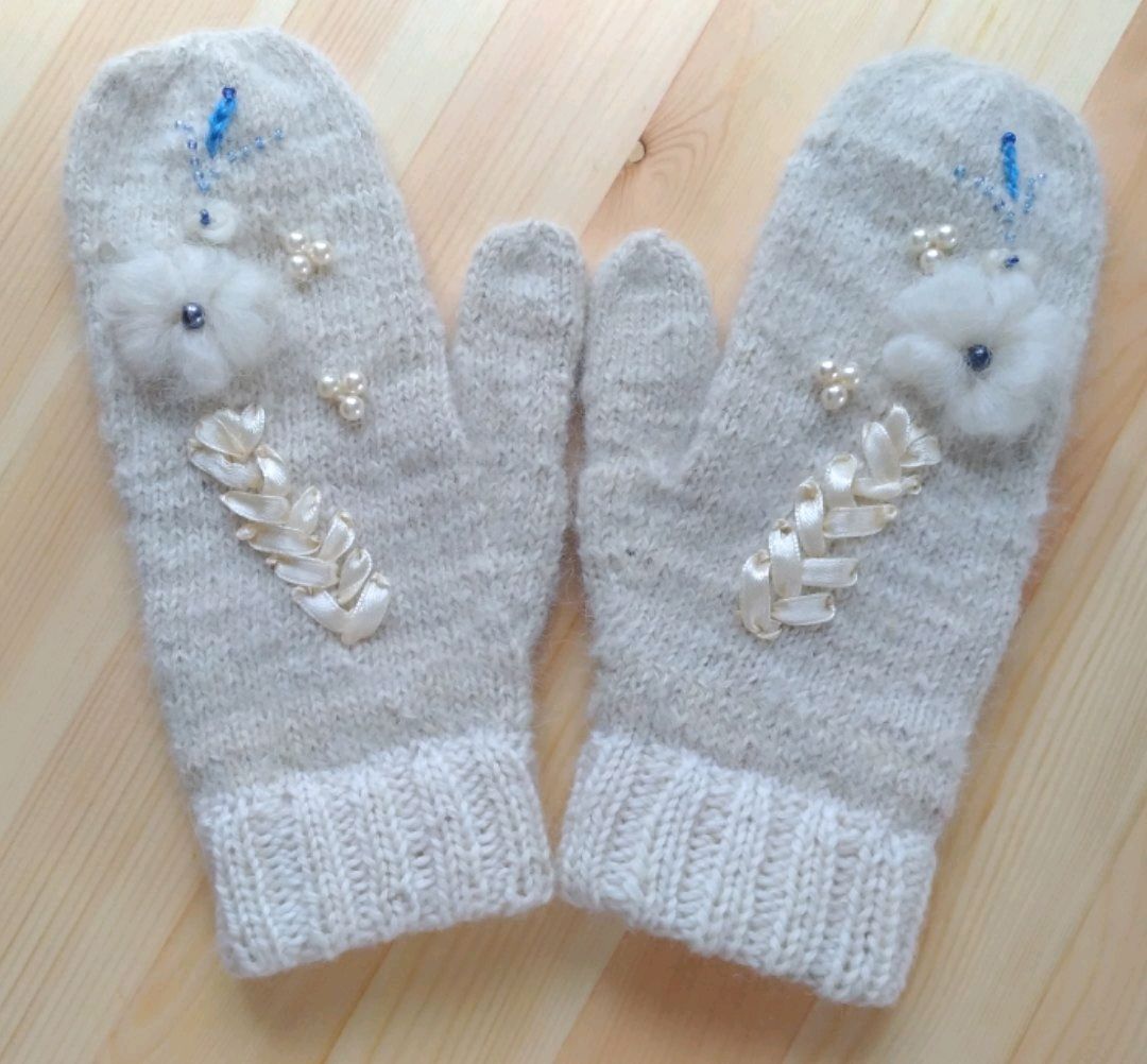 На фото предложены варежки серого цвета, но по желанию можно связать их любого другого цвета. Вязание начинается с левой рукавицы.