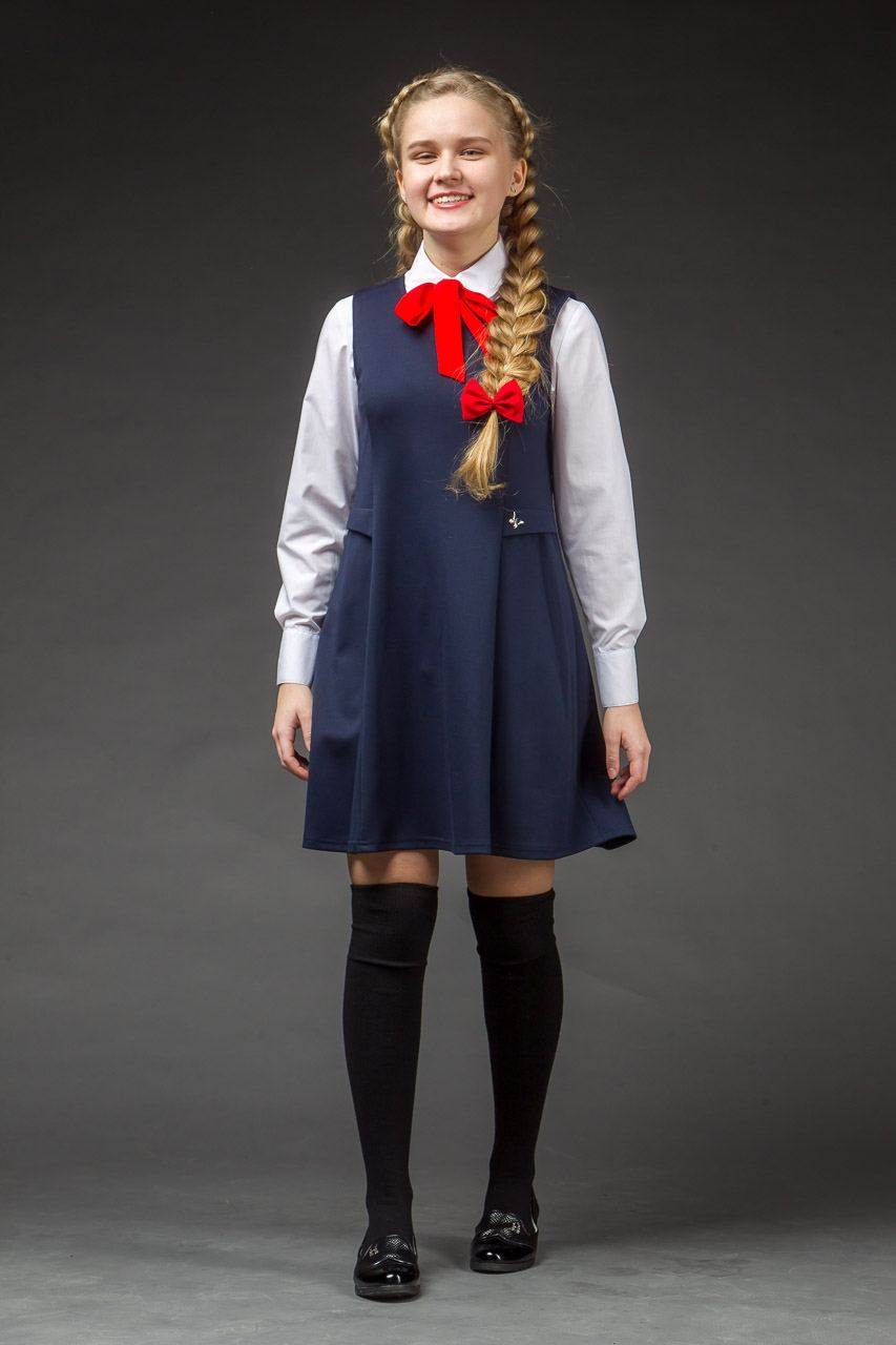При покупке формы стоит обращать внимание на фасоны, популярные в текущем учебном году. И здесь сарафан станет отличной базой для создания образа без потери комфорта