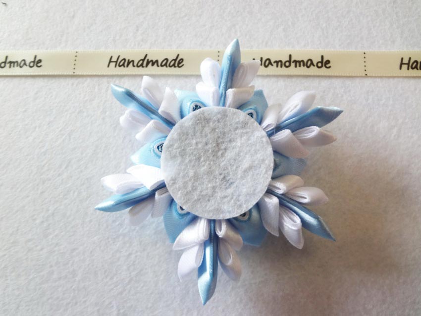 Вот… Снежинка готова. Крепление может быть различным, в зависимости от того, куда вы хотите снежинку применить. Резинка, ободок, заколка, а может подвеска или елочное украшение.