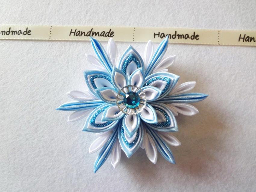 Вид рукоделия имеет полное название цумами канзаши (кандзаси). Пришло это искусство из Японии, где еще в далекие времена, появилась традиция украшать прическу изящными цветками, сложенными из шелка и украшенными проволокой, жемчугом и драгоценными камнями, которые прикреплялись на деревянную заколку-шпильку – канзаши. Изначально, эти украшения носили, чтобы отпугнуть злых духов. В основе этого искусства лежит простая техника оригами. А само слово «цумами» переводится как «защипнуть». Только материалом для складывания служит не бумага, а кусочки шелка. На сегодняшний день для создания канзаши используют не только шелк, но и кожу, разнообразные ткани и даже дорогую плотную бумагу. Лепестки цветков бывают очень маленькие, поэтому для создания цветка или снежинки канзаши, мастер пользуется пинцетом, с помощью которого склеивает лепестки между собой, или приклеивает их на основу. Выполненная в технике канзаши снежинка имеет разнообразное применение. Ею можно украсить интерьер, подвесив к потолку. Или наклеить несколько снежинок на красиво оформленную основу и повесить созданную композицию на стену. Очень часто такие снежинки применяются для украшения одежды, головных уборов, заколок и ободков. Еще в этой технике можно создать оригинальные елочные игрушки, а также брошки и необычные сувениры.