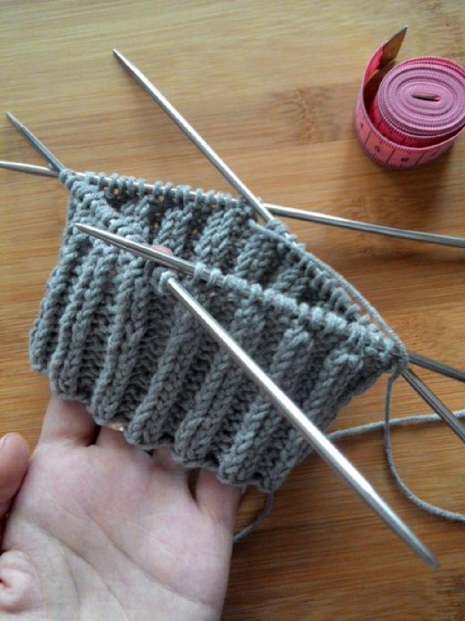 Остались только рукавчики. Вспоминаем о тех пяти или десяти петлях, которые нужны, чтобы рукав не обтягивал и был свободным. Наберите их на спицы. Провяжите по кругу резинкой два на два необходимую вам длину.