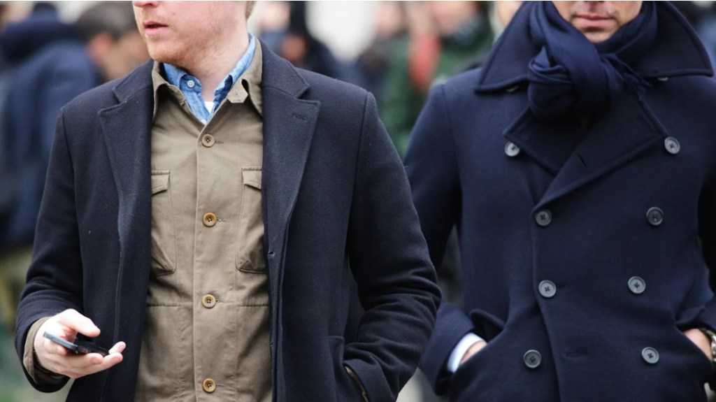 Он добавил его как изолирующий слой между рубашкой и пиджаком. Тем не менее, мужчина справа выглядит более подготовленным к холоду. Он в комплекте простого бушлата (первоначально военно-морской стиль). С его штормовым воротником и двубортной кнопочной стойкой он выступает как оплот против зимней погоды. Особенно если он сочетается с кашемировым шарфом.