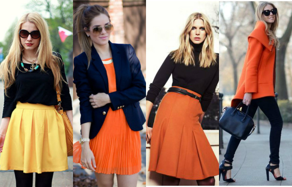 Жизнерадостно выглядит черный с оранжевым. Такая комбинация подходит для всех женщин независимо от их возраста.