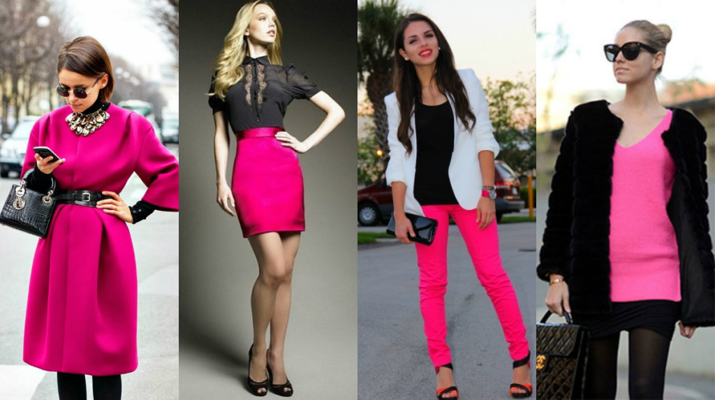 Хорошо он выглядит и с розовым. Такая комбинация идеальна для молодых, романтичных натур. Ярко розовый вместе с черным смотрится элегантно и используется при составлении комплекта классического стиля