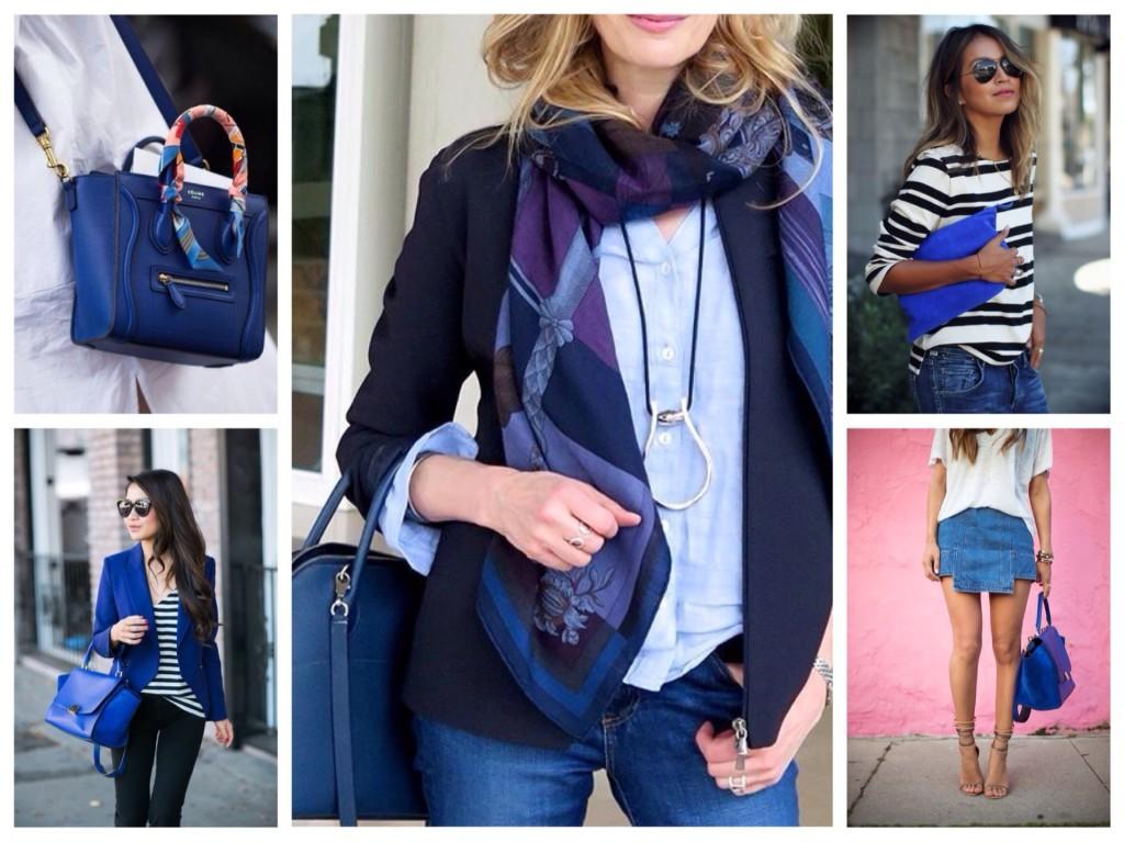- Яркий. Необычно и интересно смотрятся аксессуары насыщенно красного или желтого в сочетании с оттенком электрик и ультрамарин.