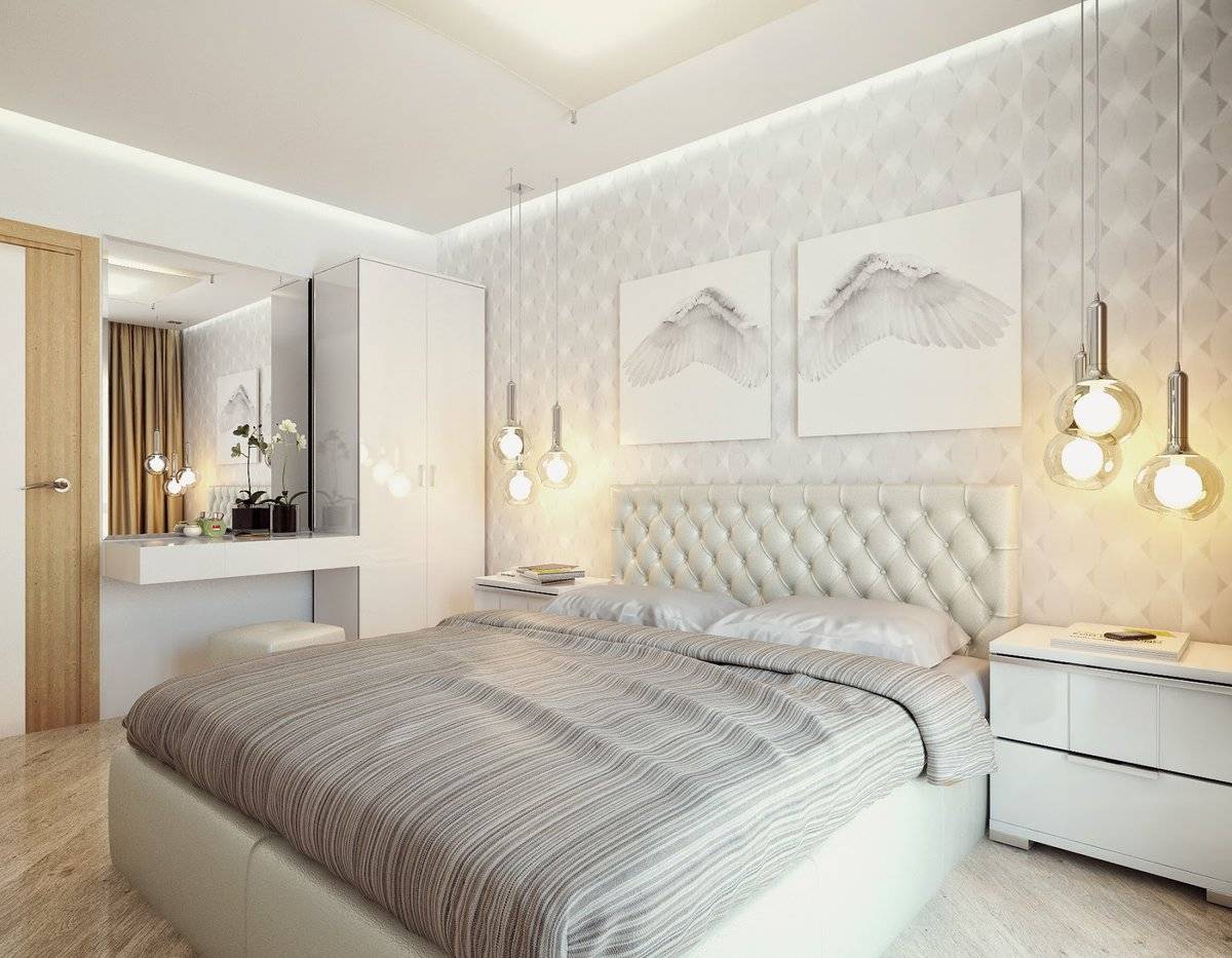 Не размещайте кровать там, где сверху что-то висит. Особенно не надо ставить мебель под