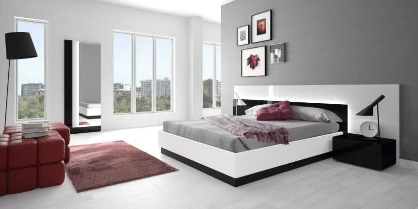 В таких спальнях стоит выбирать глянцевые текстуры, которые способствуют отражению света, что визуально увеличивает пространство.