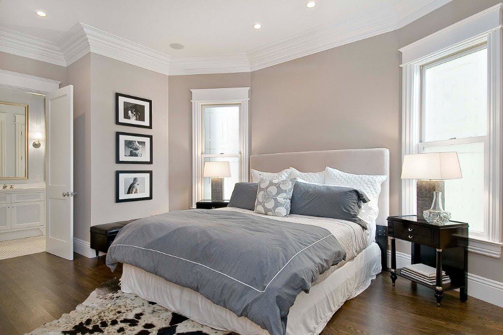 Чаще всего дизайнеры рекомендуют отдать предпочтение светло-серым тонам, особенно если речь идет об отделке стен спальни. Это может быть платиновый, агатовый, оттенок речного перламутра и т. п. Такие расцветки не будут визуально «утяжелять» пространство или уменьшать его.