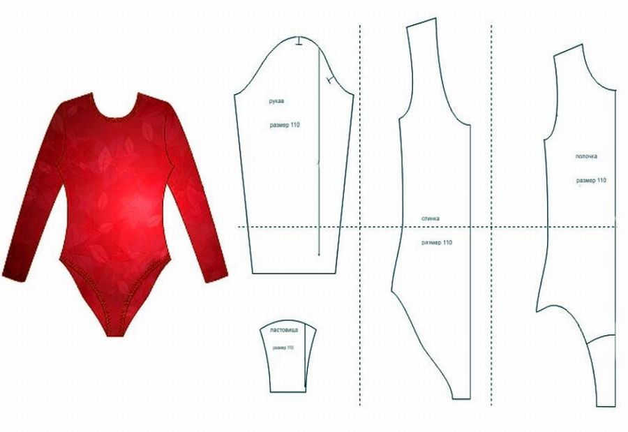 Хорошая идея выкройки боди с длинными рукавами из красной ткани.