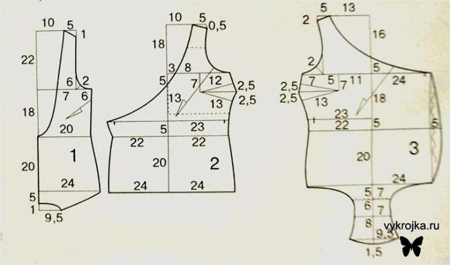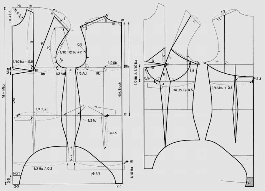 Выкройка боди, которую можно построить буквально за пять минут. В основе лежит выкройка любой облегающей блузки. Нижнюю часть автор предлагает смоделировать так, чтобы визуально было похоже на выкройку трусов. Особый момент – равенство боковых швов.