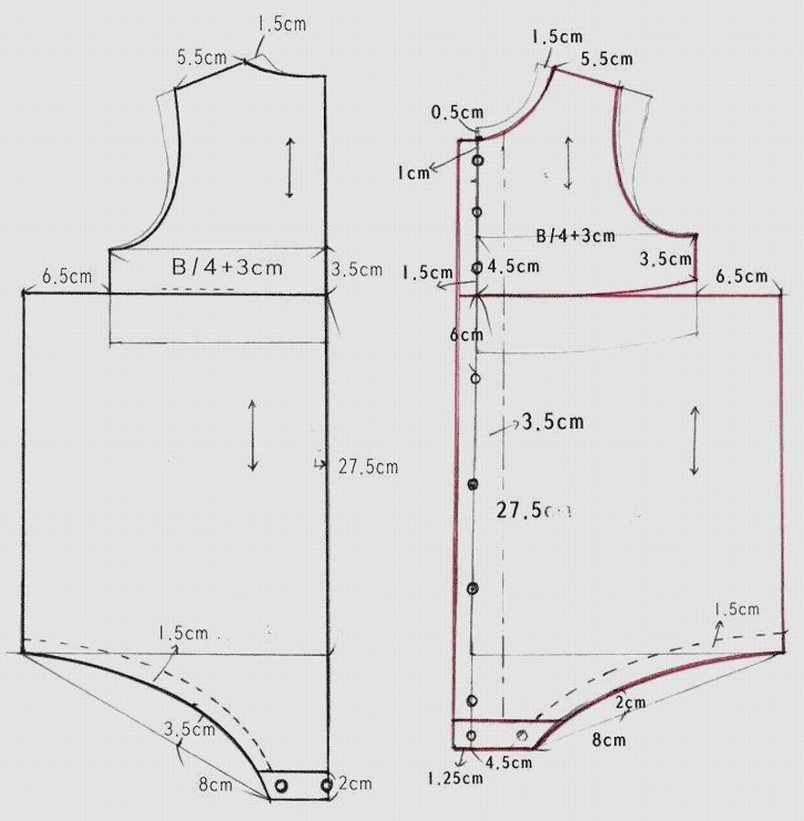 Выкройка боди без застежек, которое одевается через голову. Подойдет для деток постарше, младенцам лучше делать застежки на боку или на плечике.
