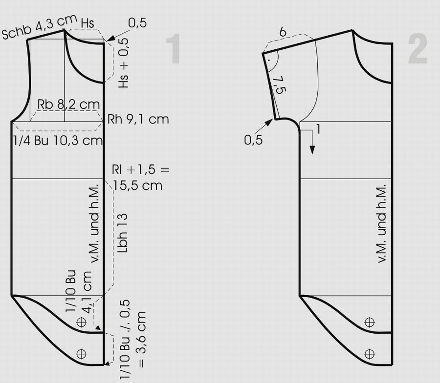 Вот выкройки детского боди без рукавов (1) и с коротким рукавчиком (2).