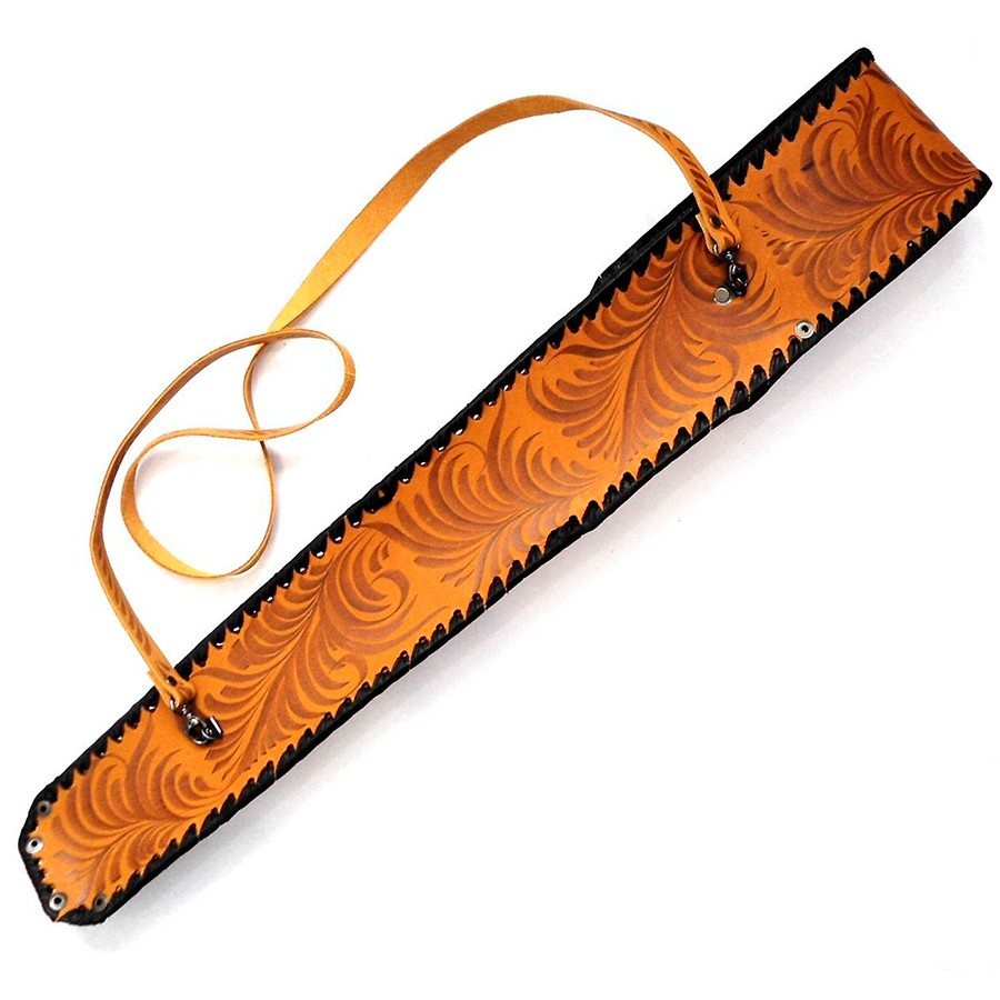 Его поверхность покрыта рисунком, который будет особенно гармонично смотреться на фоне шампуров с деревянными ручками. Последние можно легко и надежно закрепить с помощью крепкого ремешка в верхней части колчана.