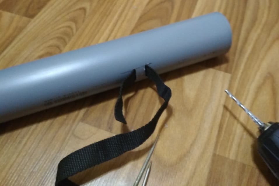 Из инструментов нам понадобится ножовка по металлу, дрель и линейка. Сначала прокладываем колпачки кусочками поролона. Используйте ножовку, чтобы отрезать кусок ПВХ необходимой длины. Просверлите пару отверстий в верхней части трубки. Мы не оставляем внутри них старые ремешки или кусочки бечевки. Это создает удобную ручку для переноски чемодана. Вот и все: самодельный, компактный и практичный тубус готов.